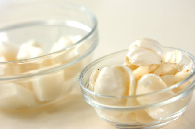 ユリネは1枚ずつはがし、茶色い部分は削ぎ落としてきれいに水洗いする。