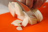 鍋にバターを弱めの中火で熱し、バターが溶けてきたら玉ネギが透き通る位まで炒め、カブを加えしんなりするまで炒める。