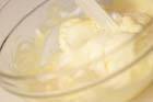 <卵黄と卵白を別に泡立てると きめ細かく泡立てられます>ボウルに卵黄、粉砂糖の半量を加え白っぽくなるまで泡立て器でよ~く混ぜる。別のきれいなボウルに卵白を泡立て器で軽く混ぜ、残りの粉砂糖を加え角が立つまでしっかり泡立てる。卵黄のボウルに卵白の半量を加えてサックリ混ぜ合わせ、更に残りの卵白を加えサックリ混ぜ合わせる。