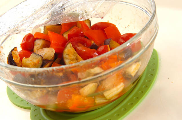 電子レンジで4分加熱して、一旦全体を混ぜ合わせる。再び4分加熱して全体を混ぜ合わせ、器に盛る。