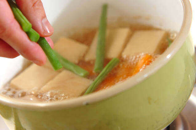 サヤインゲンを加え、サッと温める程度に火を入れ、器に盛る。