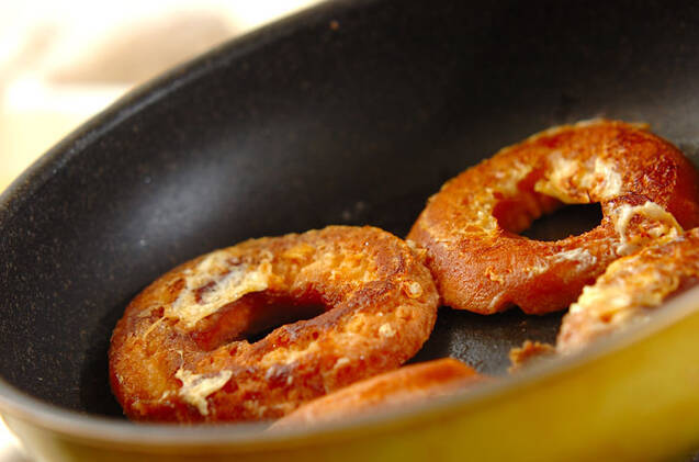 フライパンにバターを入れて溶かし、バターが溶けて細かな泡になったら(3)を入れ、両面キツネ色に焼く。器に盛り、粉糖を振る。