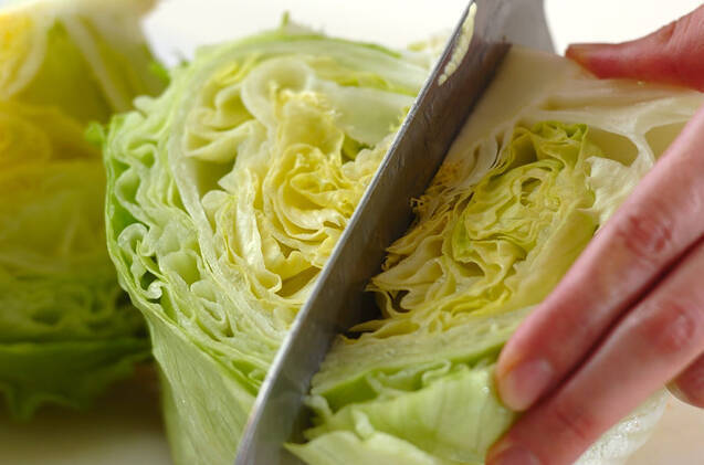 レタスは芯を残したまま4等分に切る。