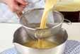 ミキサーにかけ、一度網に通して鍋に戻し、煮立つ直前で火を止め、塩コショウで味を調える。