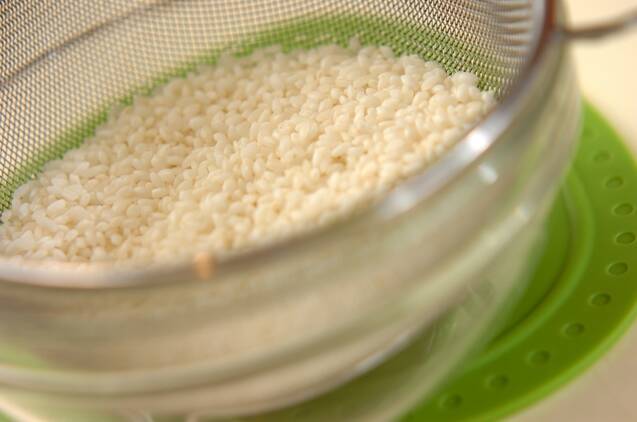 お米は炊く30分以上前に洗い、ザルに上げる。