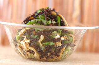 栄養たっぷりのヒジキをさっぱり酢の物でいただきます。油揚げをたっぷり入れるのもポイント。