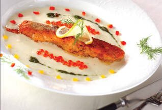 本日のメインは脂がのったサーモンのムニエル。バターの風味がふわっと広がります。