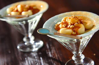 アイスやケーキのトッピングに最適なキャラメルナッツ。柔らかいキャラメルだから溶けやすくホットミルクに入れても美味。いろいろなバリエーションが楽しめますよ!