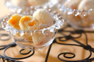 丸い形がとってもキュートな生チョコです。アプリコットはお湯につけて柔らかくもどすのがポイント。