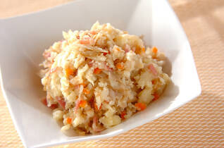 歯ごたえがいい野菜を入れた和風ポテトサラダです。ユズコショウが味のきめて。