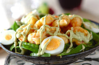 ふんわり衣がおいしいエビのフリットです。エビ以外でもイカ、ワカサギでもおいしいですよ。