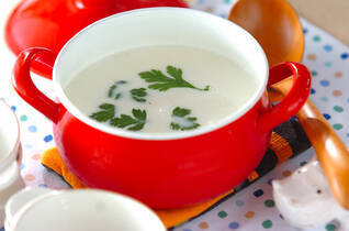 ほっこり優しいカリフラワーのスープです。あらかじめ作っておくと、スムーズにサーブできますよ。