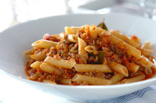 ミートソースは作り置きしておけば、色々使えて便利ですよ。粒マスタードが隠し味です。