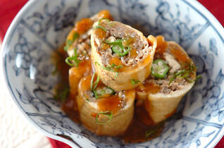 モヤシの信太巻き梅あんかけ