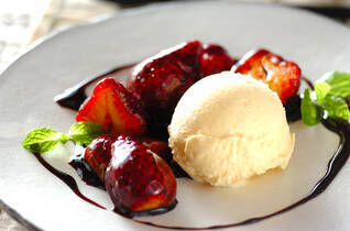 イチゴのバルサミコソテー・アイス添え