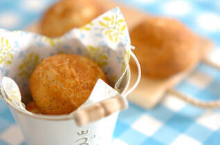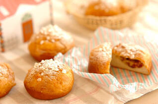 カスタードパウダーとセミドライイチゴで作ったクリームをパン生地で包みシュー生地をトッピング。シュークリームを食べているような不思議な味わいのスイーツパン。