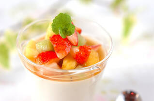 ココナッツミルクと米粉のプリン・季節のフルーツのマチェドニアソース