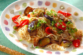 ナスと豚肉のみそ素麺