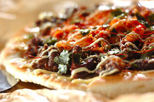 フライパンで牛肉のプルコギピザ