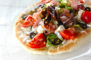 トマトと生ハムのサラダピザ