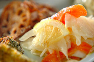 旬のカブが甘くておいしい季節。水気を絞り水っぽくなるのを防ぐのがポイント。