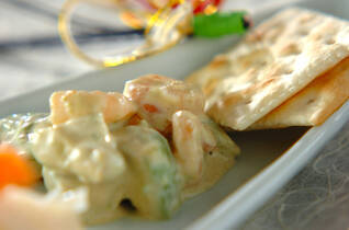 おせちに欠かせないエビ。アボカドは変色しないようレモン汁をからめるのがポイント