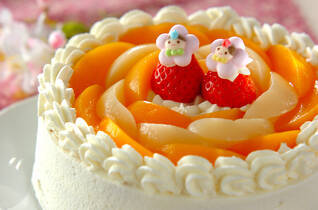 桃のデコレーションケーキ