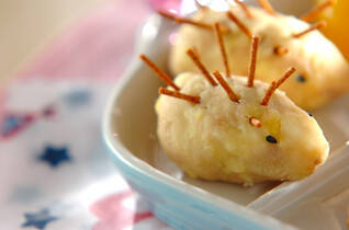 サツマイモを使ったサラダをトゲトゲがポイントのハリネズミに変身させます。トゲトゲも食べられますよ。