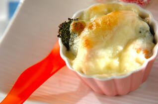 お魚を使った簡単グラタン。ホワイトソースとチーズが絡んだお魚は子供でも食べやすく仕上がります。