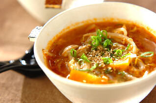 冷凍コンニャクのユッケジャンスープ