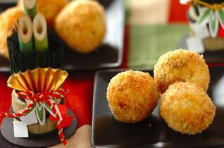 おせちのお煮しめは、しっかり味がついているので、手軽にコロッケができます。