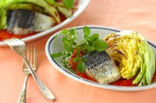 大きくカットして焼いたキャベツは、表面は香ばしく中は蒸し上がってジューシーに仕上がります。ナイフとフォークでステーキのようにいただきます。