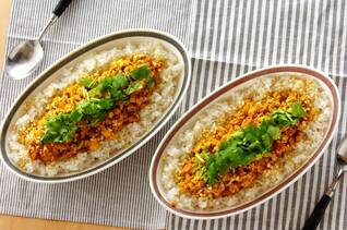 豆腐をひき肉代わりに使ったヘルシーなカレー。スパイスと香味野菜の香りで食欲がそそられます。