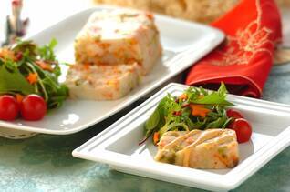 エビやスモークサーモン、ホタテの豪華なテリーヌです。クリスマスらしい彩りで、パーティーの前菜にも喜ばれる一品!
