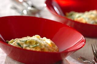 ズッキーニは塩をからめてアクを抜きましょう。エバミルクを使ってヘルシーに!