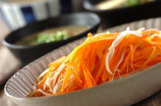 ニンジンは塩ゆでして甘味をUP! 鶏ひき肉を使ってカロリーダウン。ゴマのコクと風味で満足度大!