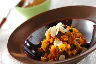 カボチャの甘さと、アーモンドバターの香ばしいコクが相性ばっちり! カボチャとアーモンドに含まれるビタミンEは、動脈硬化予防、アンチエイジングの効果も。
