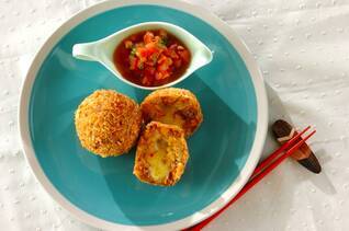 チリパウダーやクミンをプラスし、サルサソースを添えると、いつものコロッケがメキシカンに大変身!