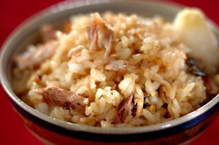 こんがり焼いたサンマをほぐしショウガと共にご飯に混ぜ込みました。サンマと薬味がよく合います。