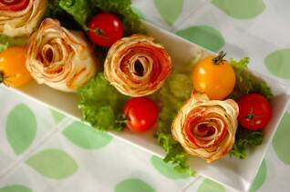 バラの形の華やかなベイクドポテトです。薄くスライスするのがポイントです。