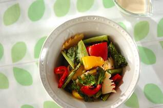 オーブン任せのカラフルな焼き野菜サラダ。コクのあるチーズドレッシングを添えて。