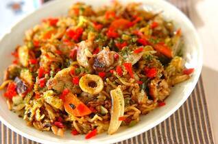 そばとごはんの食感がたまらないそば飯。簡単なので忙しいときにもおススメです。