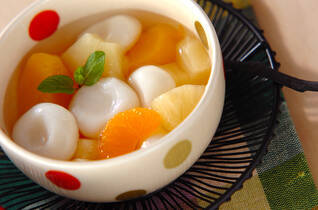 フルーツ缶のシロップを利用した、簡単スイーツ。もちもちとした食感の白玉は手作りならでは!