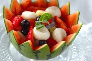 子どもたちの夏休みに、スイカを丸ごと使った華やかなデザートはいかがですか。大人はサイダーを白ワインにしても。