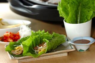 お好きな物を巻いて召し上がれ。サムジャンと呼ばれるみそダレは手作りします。