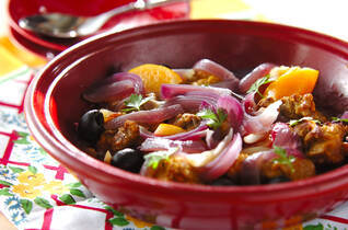 タジン鍋を使って。レモンの酸っぱさは気にならず、サッパリといただけます。タジン鍋がなければ土鍋で代用可能。
