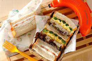 ブロッコリー、ゆで卵、紫キャベツを使うので切った時の断面がキレイなサンドイッチ。インスタグラムで人気が出た「沼サン」のアレンジレシピです。