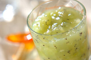 寒天は短時間でかたまるので、すぐに食べたい時にオススメ。キウイの甘酸っぱさ がおいしいデザートです。