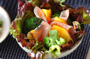 柿の甘さと生ハムの塩気が絶妙なバランス。ドレッシングはシンプルな物がオススメ。