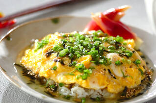 高菜とチリメンジャコを使った和風のオムライス。あんにはお茶漬けの素を使うのでとっても簡単!